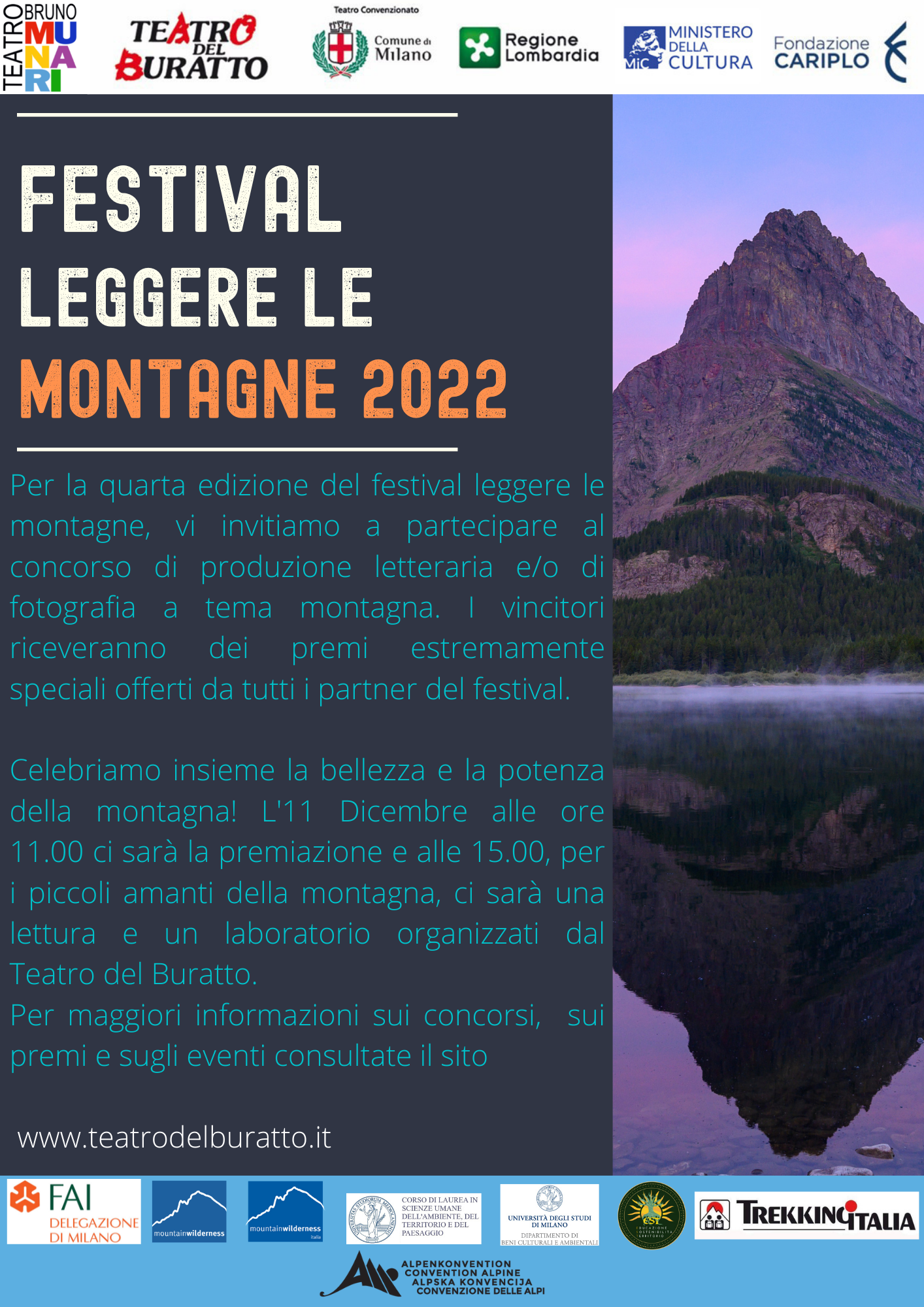 Maggiori informazioni sulla partecipazione ai contest e sull'evento al seguente link: https://www.teatrodelburatto.com/festival-leggere-le-montagne
